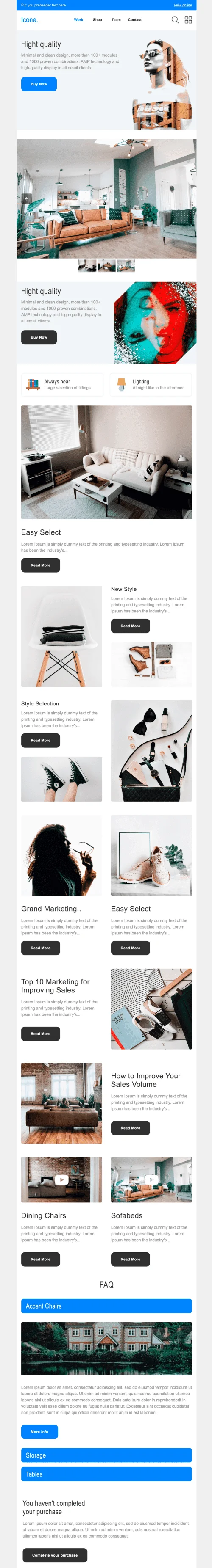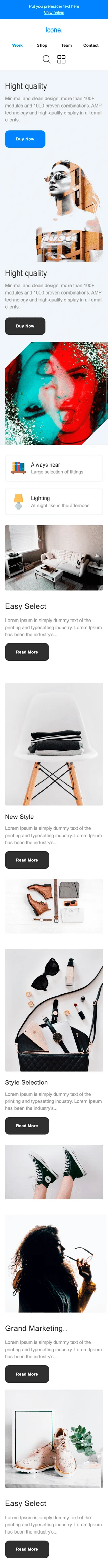 Il nostro modello di email promozionale "Style Icon" è lo strumento perfetto per le aziende nel settore dell'arredamento, dell'interior design e del fai-da-te che cercano di mostrare i loro ultimi design e tendenze. Il modello presenta un design elegante e moderno che riflette la creatività e l'innovazione del settore, con grafiche visivamente accattivanti e contenuti personalizzabili. Con un chiaro invito all'azione, questa email incoraggia gli spettatori a esplorare i prodotti e gli accessori in evidenza e ad aggiungere un tocco di stile ai loro spazi abitativi. Non perdere questa opportunità di ispirare i tuoi clienti e aumentare le vendite con il nostro modello di email professionale e impattante.