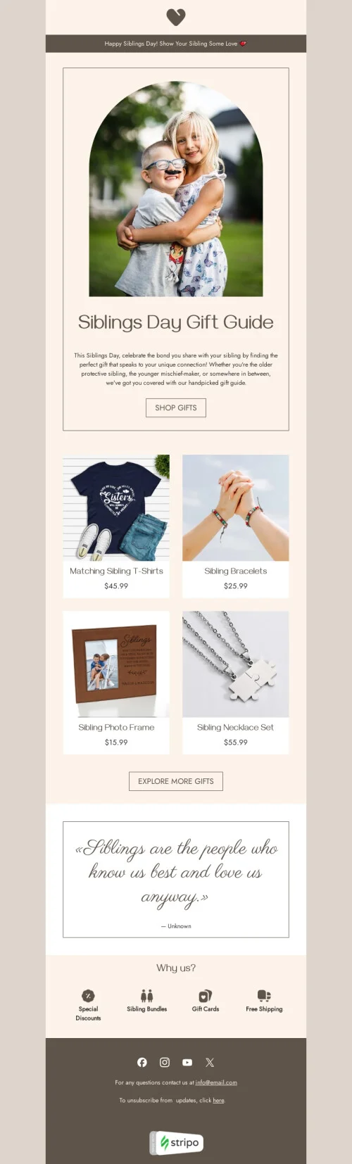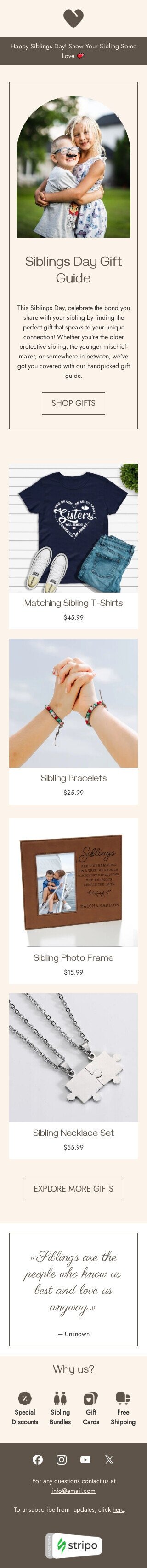 Modello email Giornata dei fratelli «Regalo per i fratelli» per il settore industriale di ecommerce