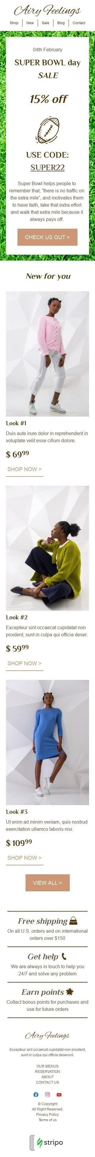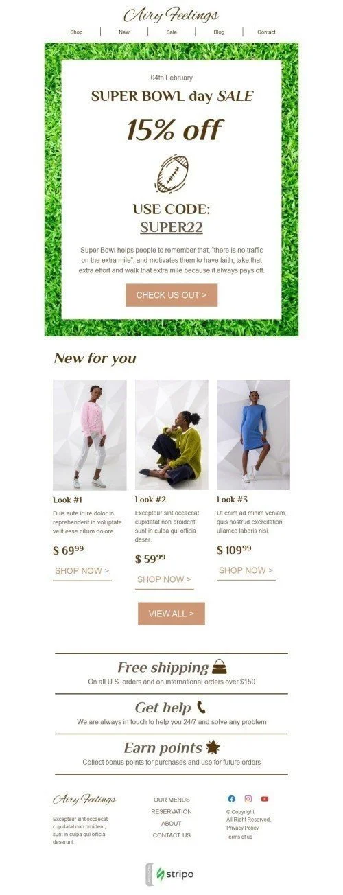 Modello Email Super Bowl «Raccogli punti bonus» per il settore industriale di Sport