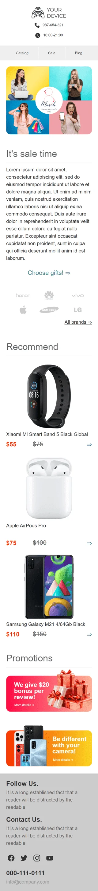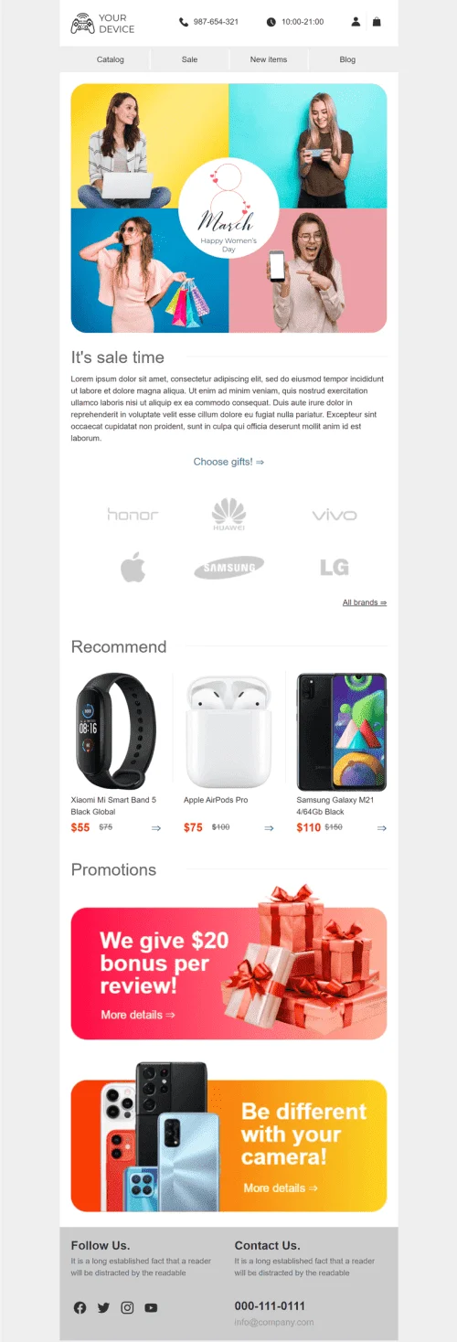 Modello Email Festa della donna «Il tuo dispositivo» per il settore industriale di Gadget