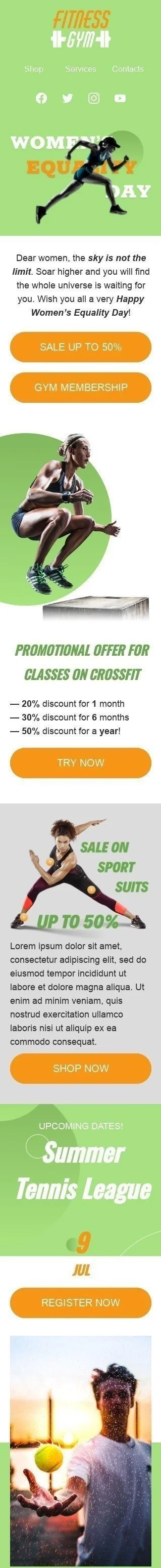 Modello Email Giornata dell'uguaglianza delle donne «Abbonamento a una palestra» per il settore industriale di Sport