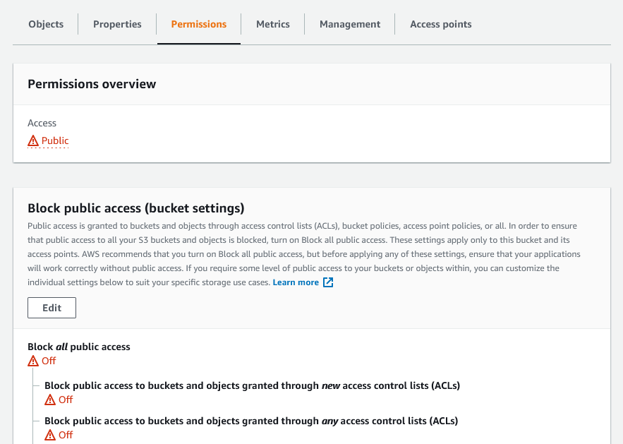 https://bucketname.s3.eu-west-1.amazonaws.com - Deactivate Objects from the bucket permissions: