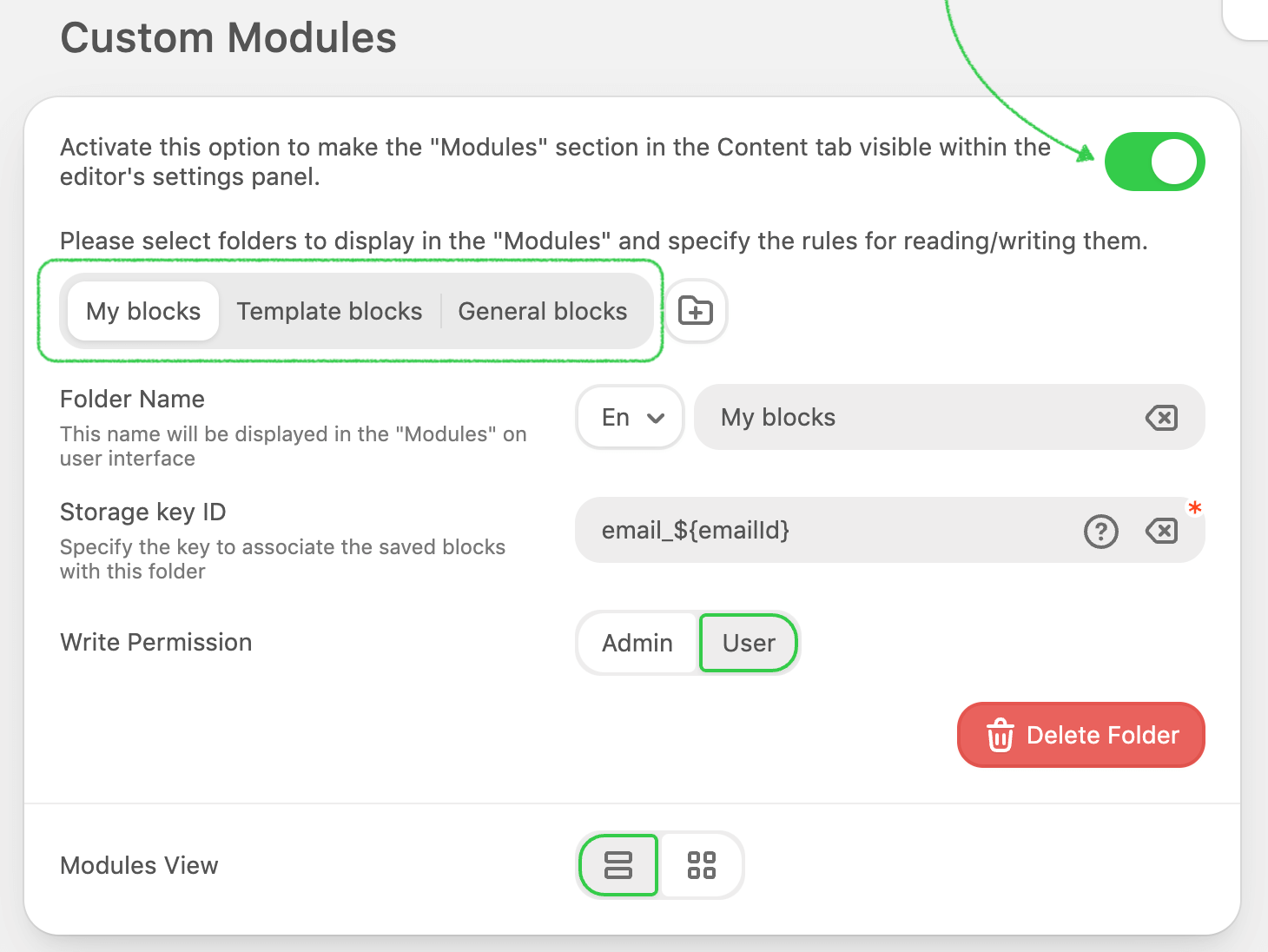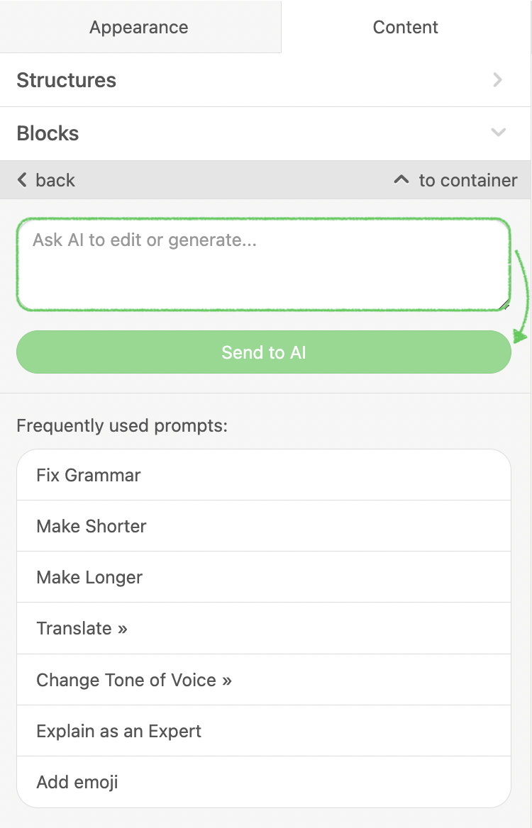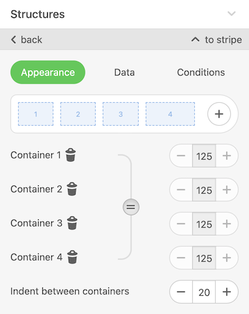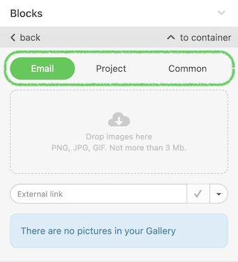 Please be advised that the features above these two containers, that you see in the demo application or in the Stripo account, are not related to the Plugin, so to get the same controls you have to implement them inside your application independently.