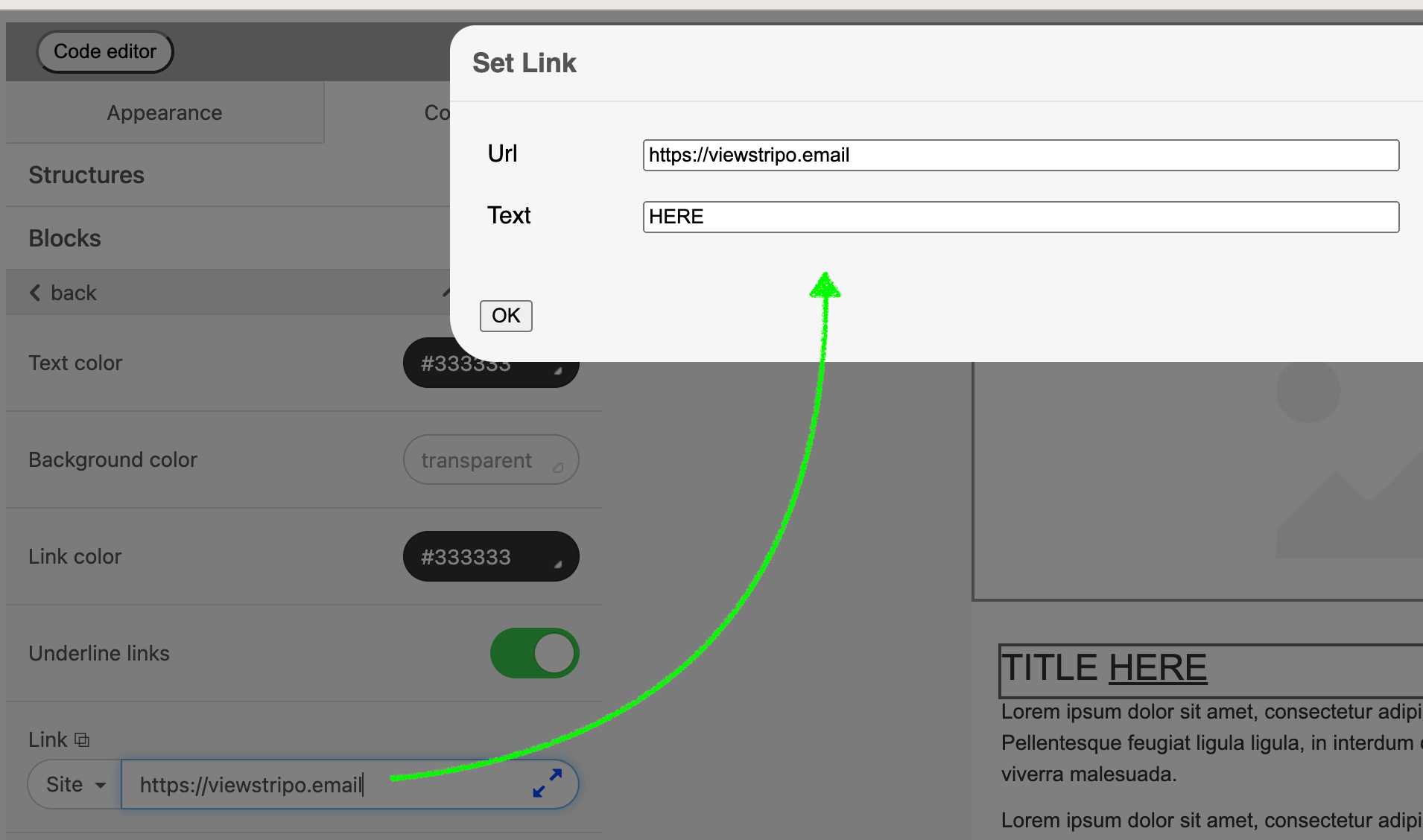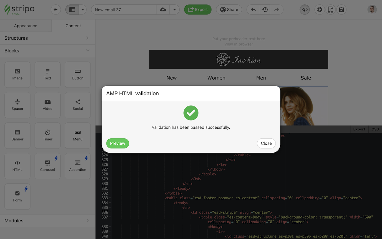 In case, no errors received once the email code validation check is completed, the editor will display the success notification message in the preview window as shown below: