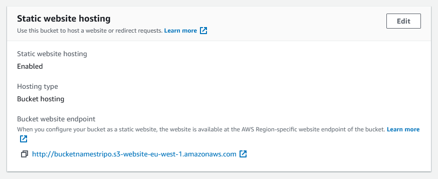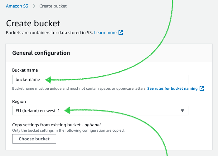 For example:https://{bucket}.s3.{region}.amazonaws.combucket- bucketnameregion- eu-west-1 (Ireland)