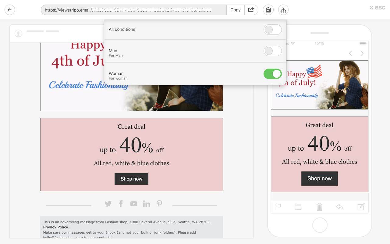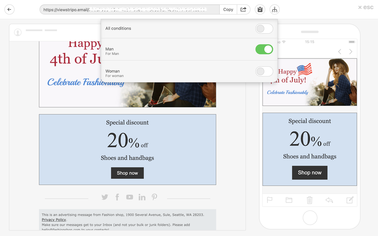 Additionally, you can add other parameters to the initialization script. It allows you to get more opportunities for your users according to their category. For example, you can show them different social networks, modules, or merge tags.