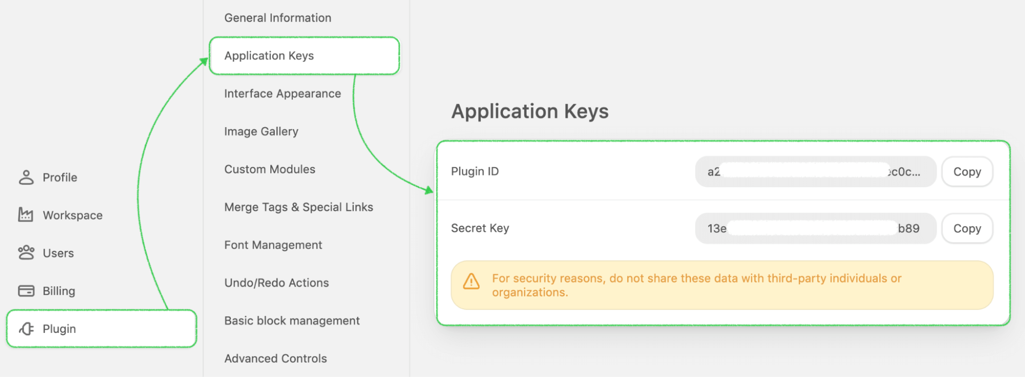 Plugin_IDandSECRET_KEYvalues by signing up here and creating a new application under the Plugin menu. - Download the client-side code example.