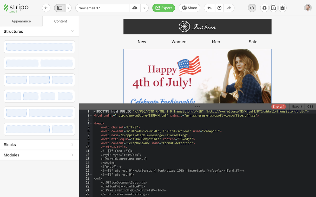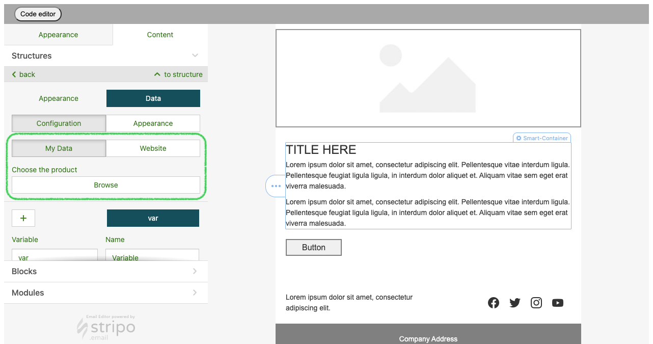 The Stripo Plugin is written in native Javascript and designed as a component in a way to be easily configured and extended within any web application.