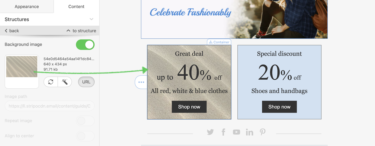 <div id="stripoSettingsContainer"></div> <div id="stripoPreviewContainer"></div> -