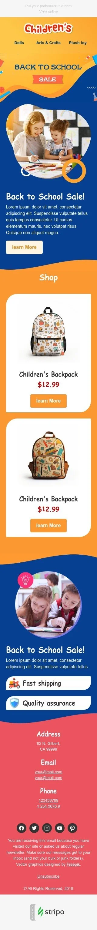 Modelo de E-mail de «Loja infantil» de De volta à escola para a indústria de Artigos para crianças