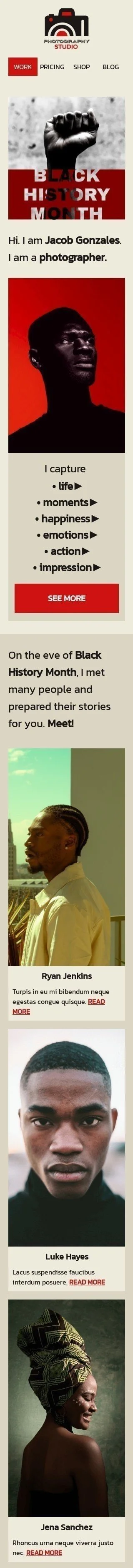 Modelo de E-mail de «O trabalho do fotógrafo» de Mês da história negra para a indústria de Fotografia