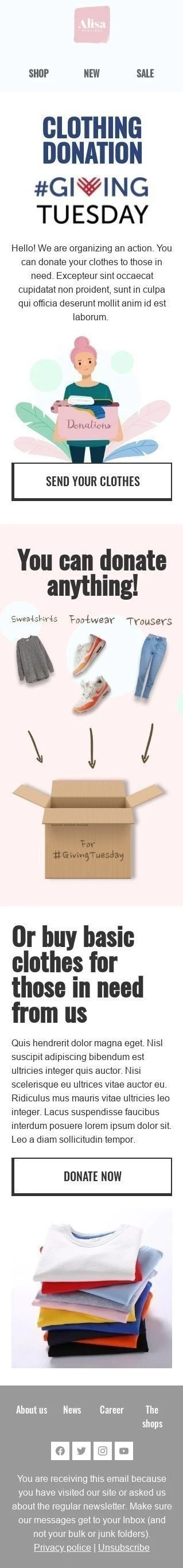Modelo de E-mail de «Doação de roupas» de Dando terça-feira para a indústria de Moda