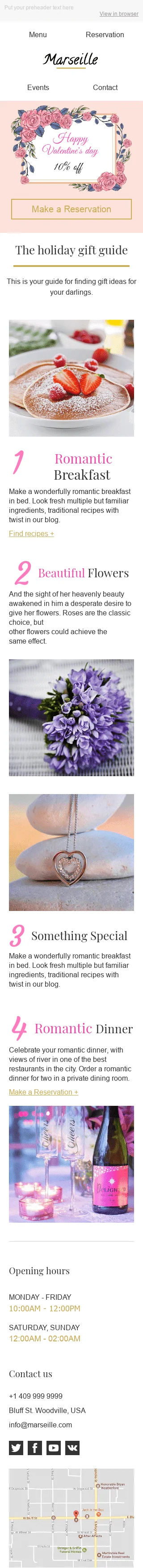Modelo de E-mail de «Algo Especial» de Dia dos Namorados para a indústria de Restaurantes