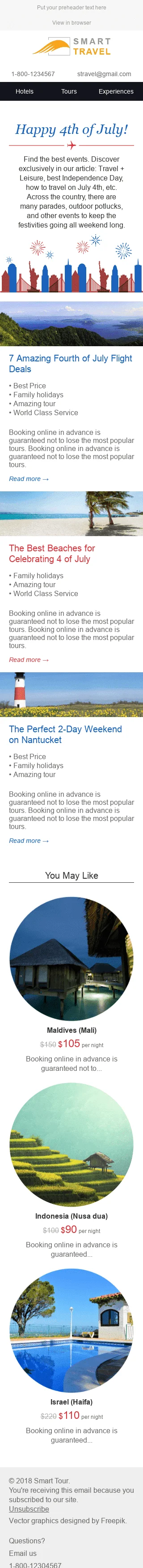 Modelo de E-mail de «Explore a América» de Dia da Independência para a indústria de Turismo