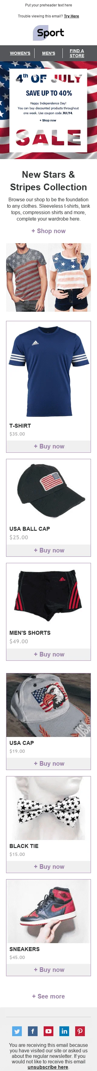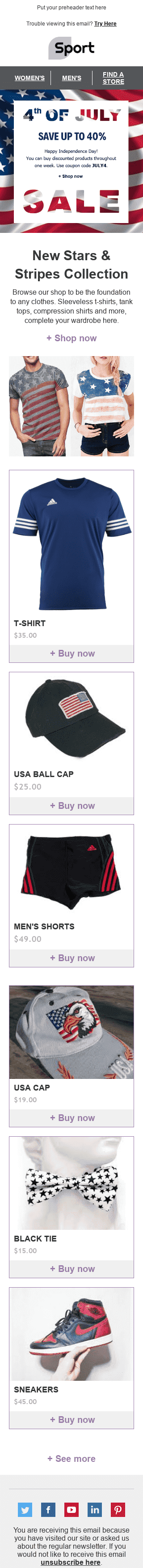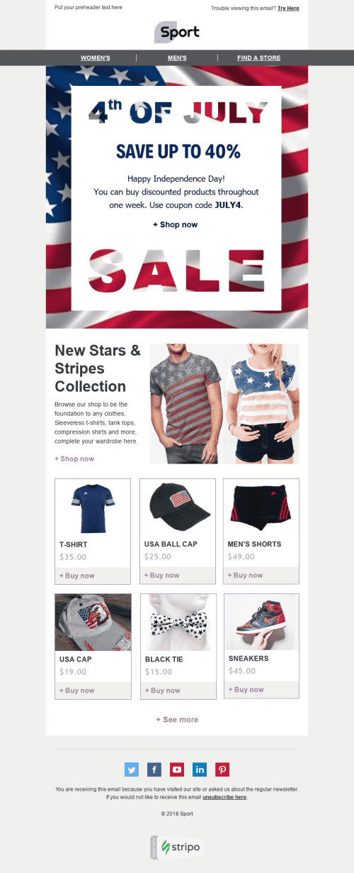 Modelo de E-mail de «Estrelas e Faixas» de Dia da Independência para a indústria de Esportes