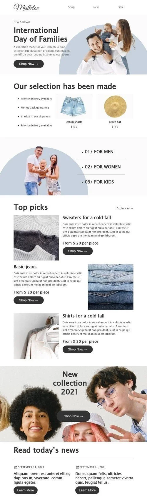 Modelo de E-mail de «Mistletoe» de Dia Internacional das Famílias para a indústria de Moda