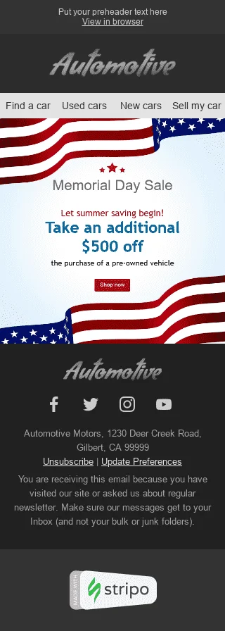 Modelo de E-mail de «Vermelho e Branco» de Memorial Day para a indústria de Automóveis e motocicletas