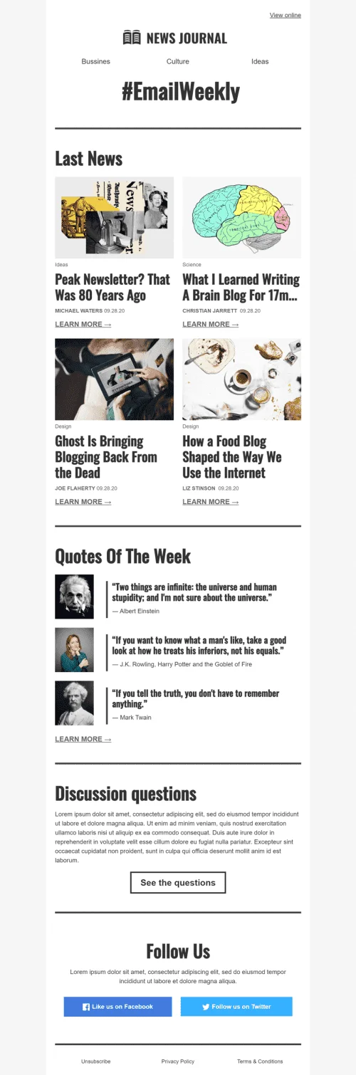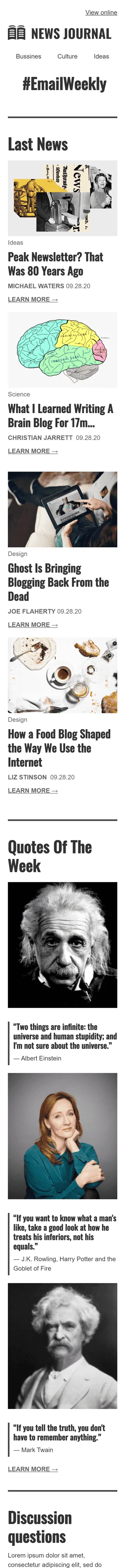 Modelo de E-mail de «Email semanal» de Promoção para a indústria de Publicações & Blogs