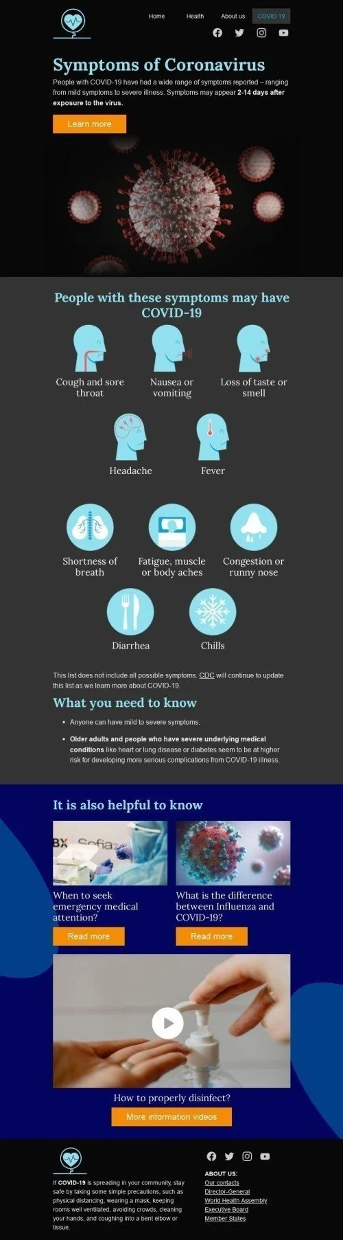 Modelo de E-mail de «Sintomas do Coronavírus» de Promoção para a indústria de Saúde e beleza