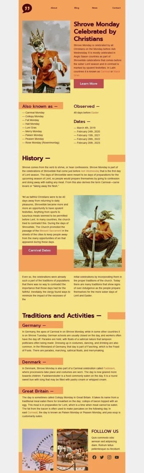 Modelo de E-mail de «Comemorado por Cristãos» de Segunda-feira de carnaval para a indústria de Publicações & Blogs