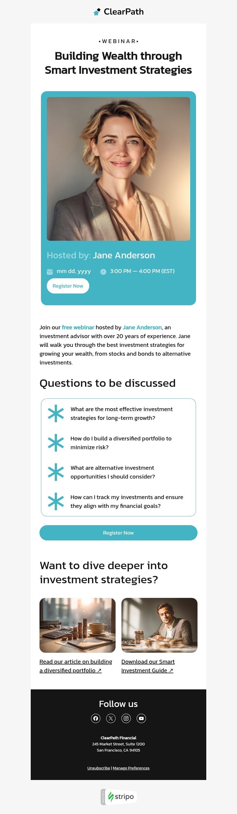 Modelo de e-mail de «Construindo riqueza» de assinatura para a indústria de finanças