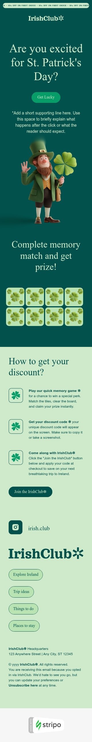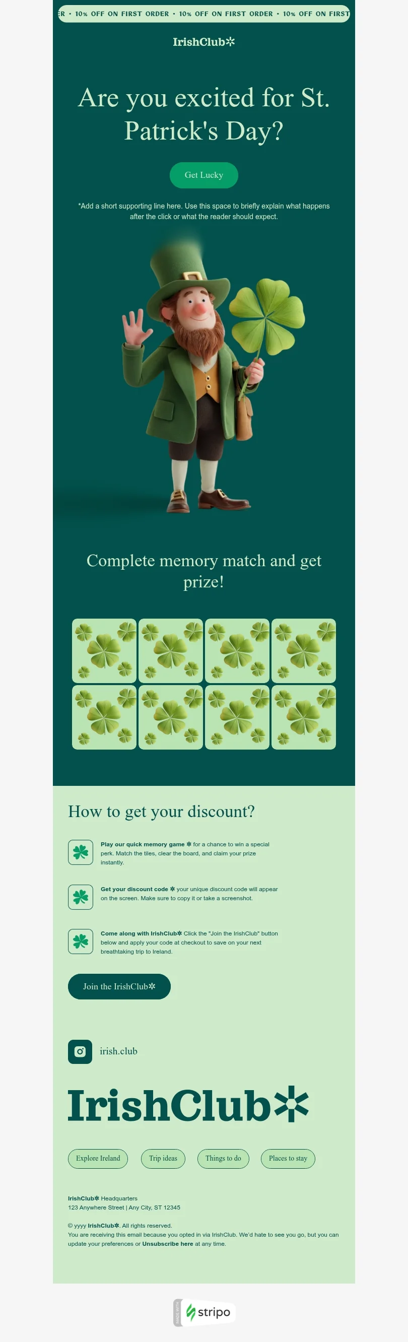 Modelo de e-mail de «Venda de lanches para o Dia de São Patrício» de Dia de São Patrício para a indústria de comércio eletrônico