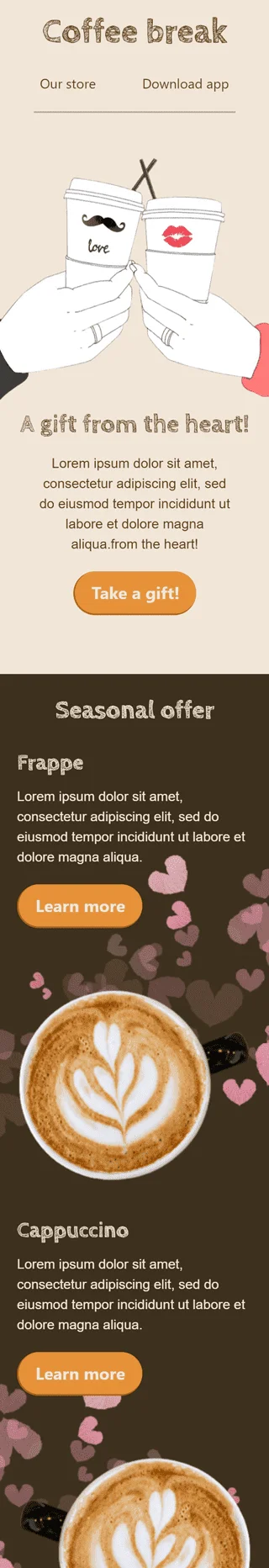 Modelo de E-mail de «Pausa para o café» de Dia dos Namorados para a indústria de Bebidas