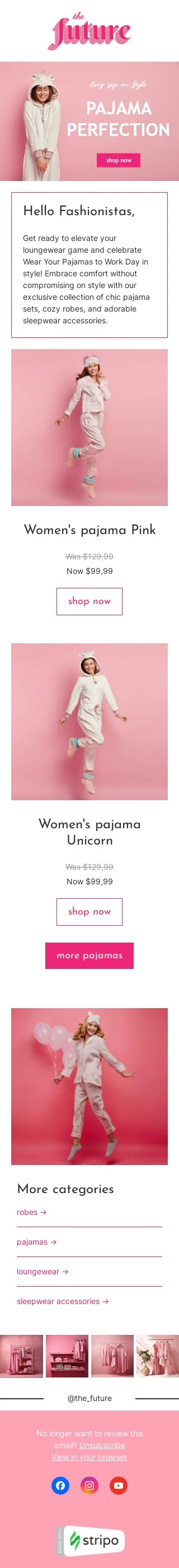 Modelo de e-mail de «Conjuntos de pijama» de Use seu pijama para trabalhar no dia para a indústria de moda