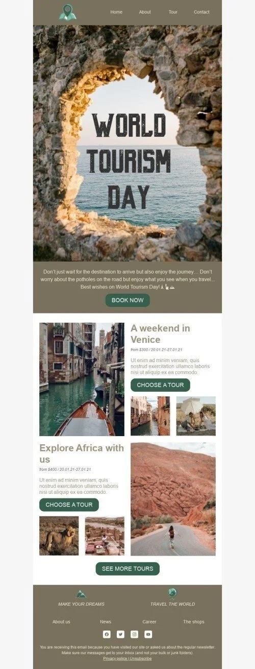 Modelo de E-mail de «Fim de semana em Veneza» de Dia Mundial do Turismo para a indústria de Turismo