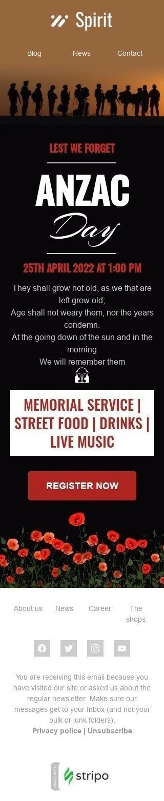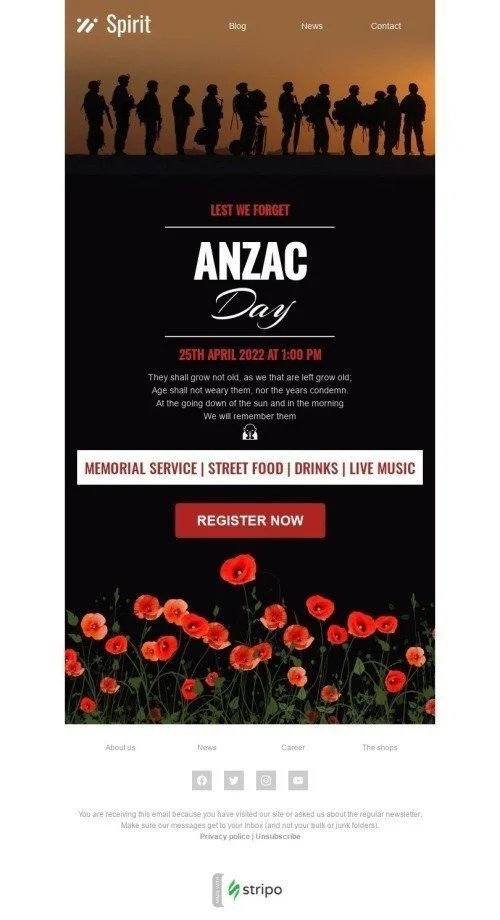 Шаблон письма к празднику День Анзак «Мы будем помнить о них» для индустрии «События»