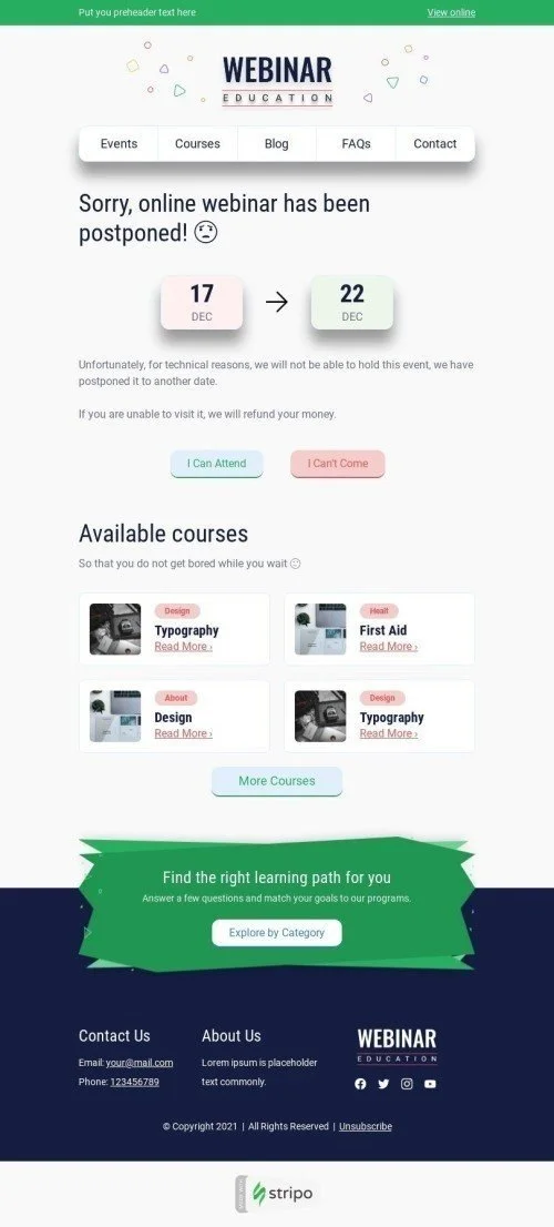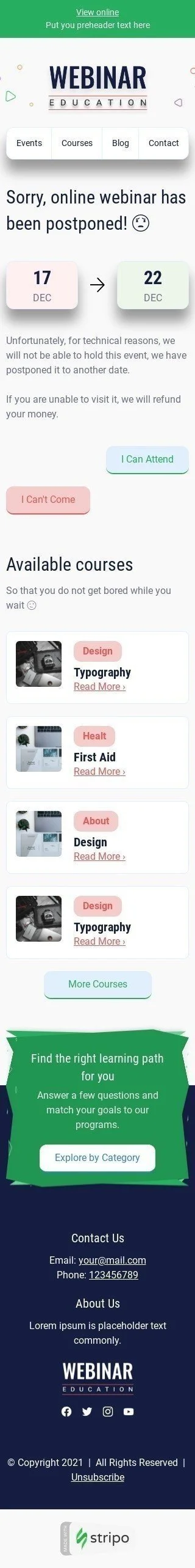 Шаблон письма «Отложенное мероприятие» тематики Извинение для индустрии «Школа и Образование»