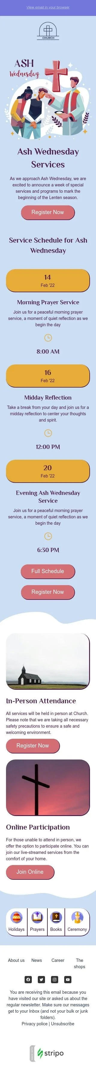 Шаблон письма к празднику Пепельная среда «График обслуживания» для индустрии «Церковь»