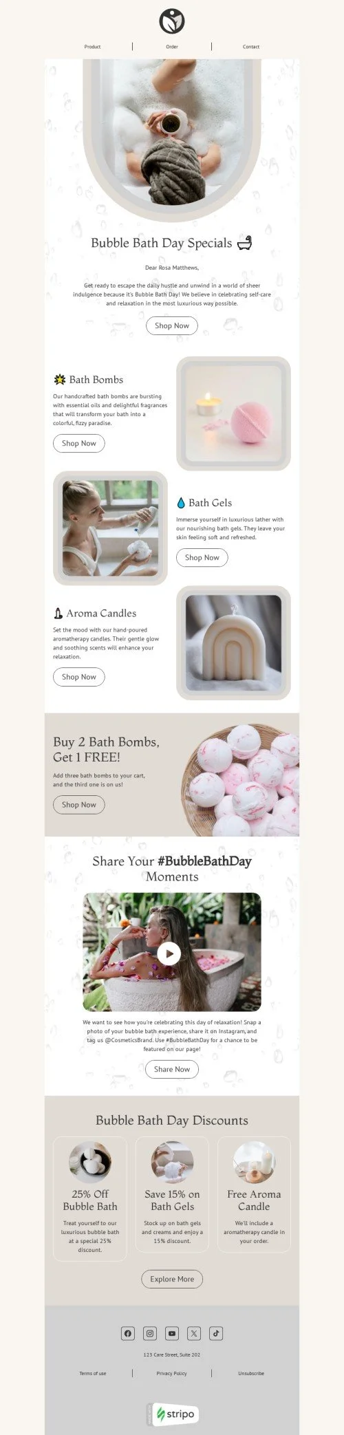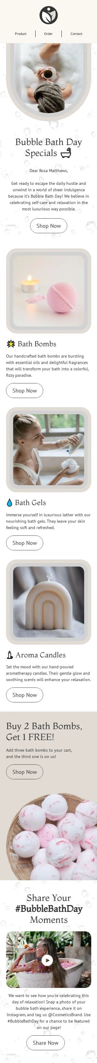 Шаблон письма к празднику День ванны с пеной «Моменты Дня ванны с пеной» для индустрии «Косметика»