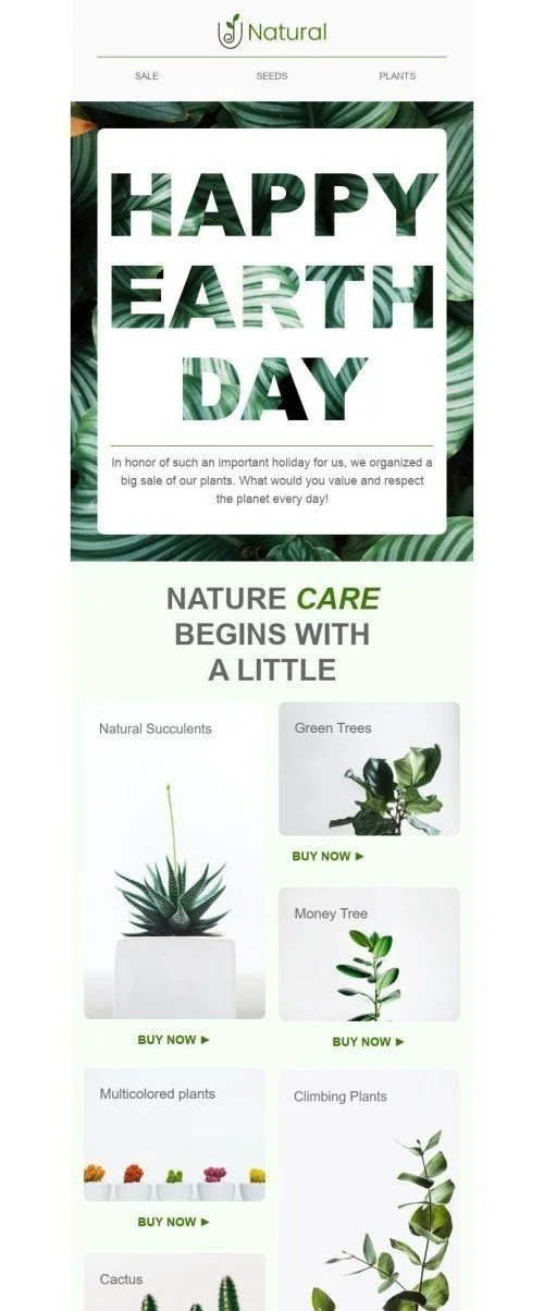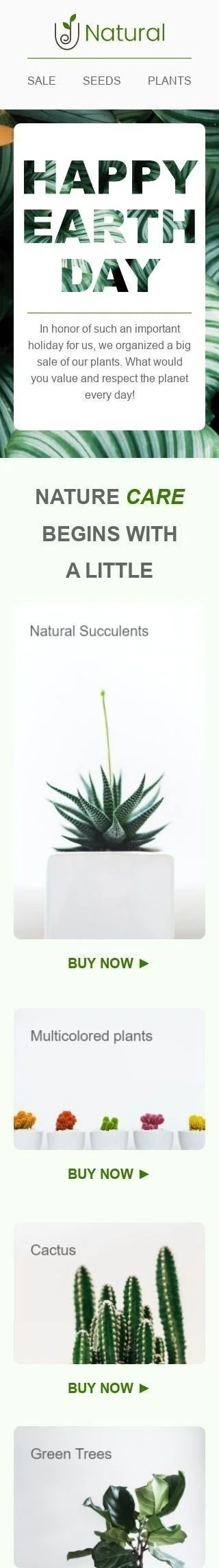 Отпразднуйте Земной день в стиле с помощью шаблона электронной почты "Забота о природе". Специально разработанный для отрасли мебели, интерьеров и DIY, этот шаблон является идеальным способом продвижения экологически чистых продуктов и повышения осведомленности о проблемах окружающей среды. Шаблон включает в себя красивое заглавное изображение, которое демонстрирует природу и ее красоту, а также призыв к действию, который побуждает получателей действовать и поддерживать экологические инициативы. Легкий в редактировании макет означает, что вы можете быстро и легко настроить шаблон в соответствии с вашим брендом, что делает его идеальным инструментом для вашей кампании электронной почты ко Дню Земли.