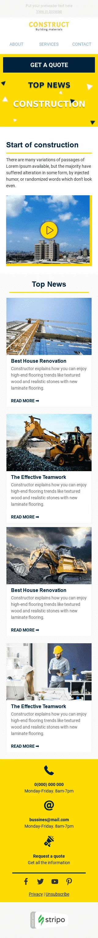 Шаблон письма «Мегаполис» тематики Дайджест рассылка для индустрии «Строительство»