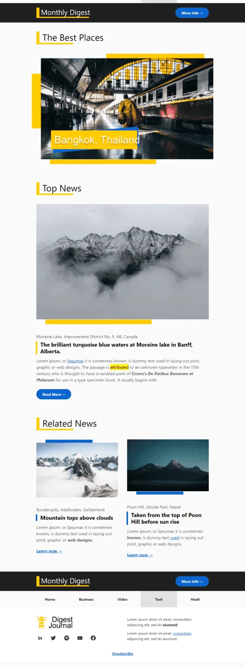 Шаблон письма к празднику Дайджест рассылка «Смарт-Digest» для индустрии «Публикации и Блог»