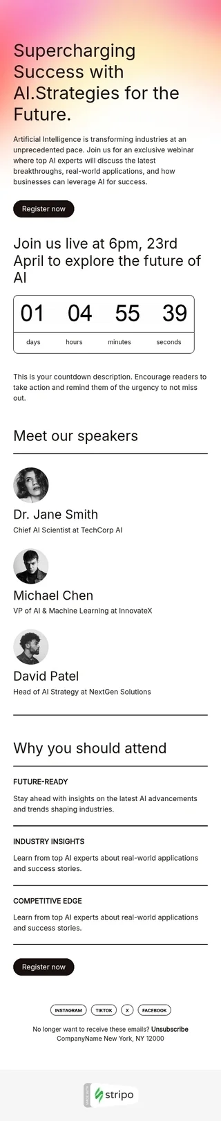 Шаблон письма «Ускоряй успех благодаря искусственному интеллекту» тематики напоминание о событии для индустрии «Обучение и информация»