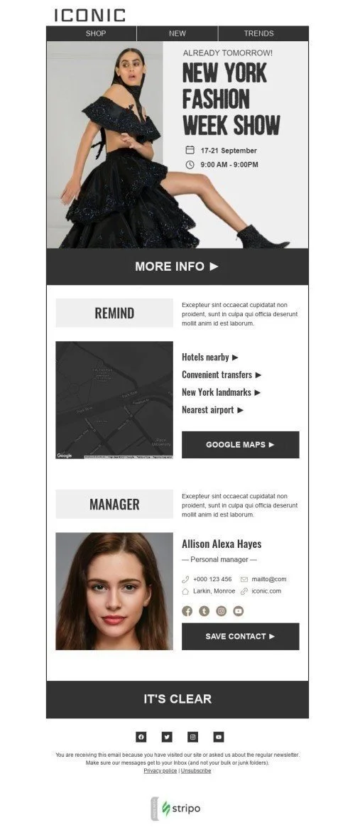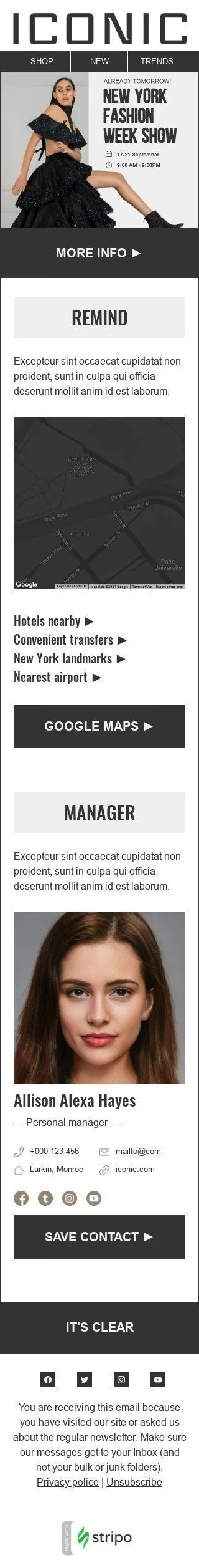 Шаблон письма к празднику Неделя моды «Последнее напоминание» для индустрии «Мода»