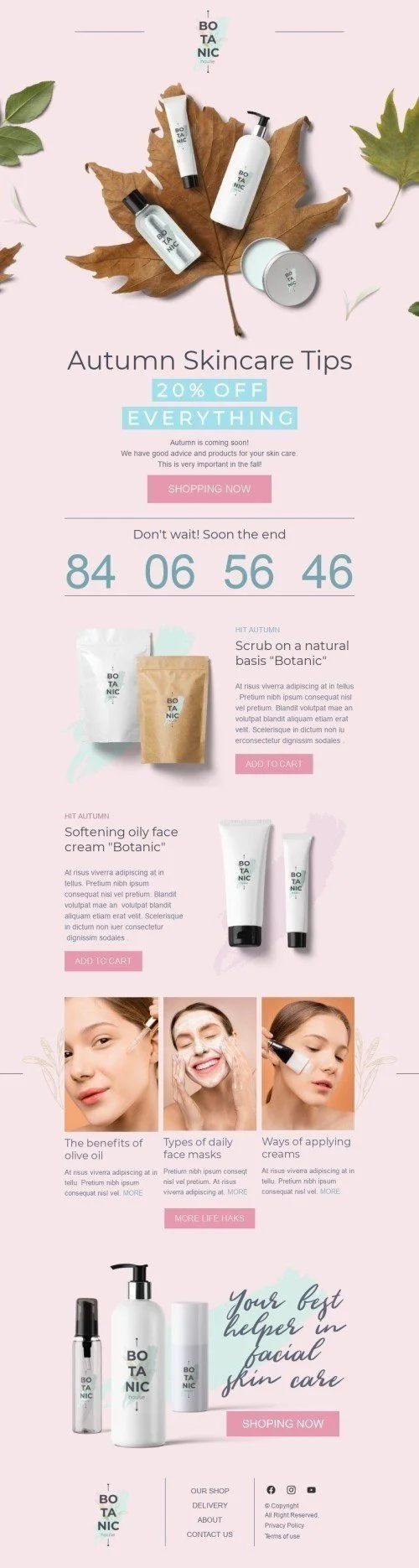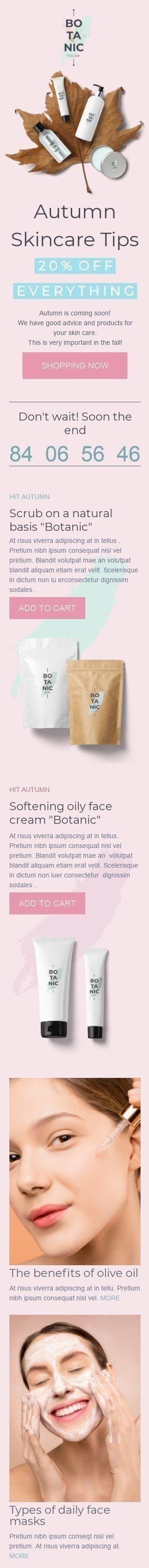 Шаблон письма к празднику Первый день осени «Осенние советы по уходу за кожей» для индустрии «Косметика»