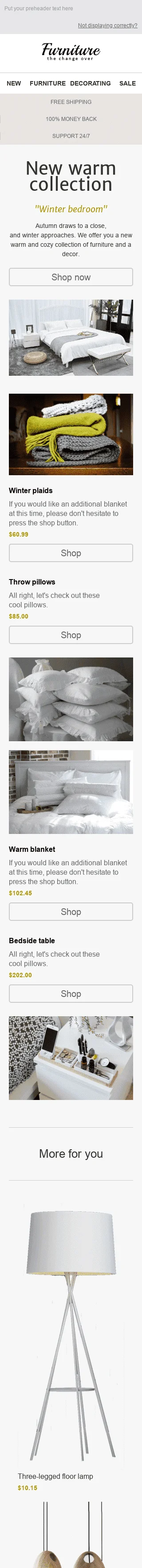 Шаблон письма с новой коллекцией "Теплая спальня" для индустрии "Мебель, Интерьер, Декор"