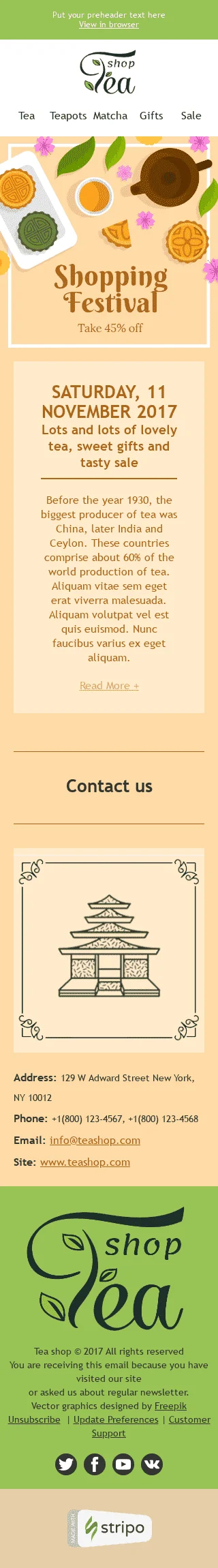 Шаблон письма к празднику Всемирный День Шопинга "Вкусные скидки" для индустрии "Напитки и Кофе"