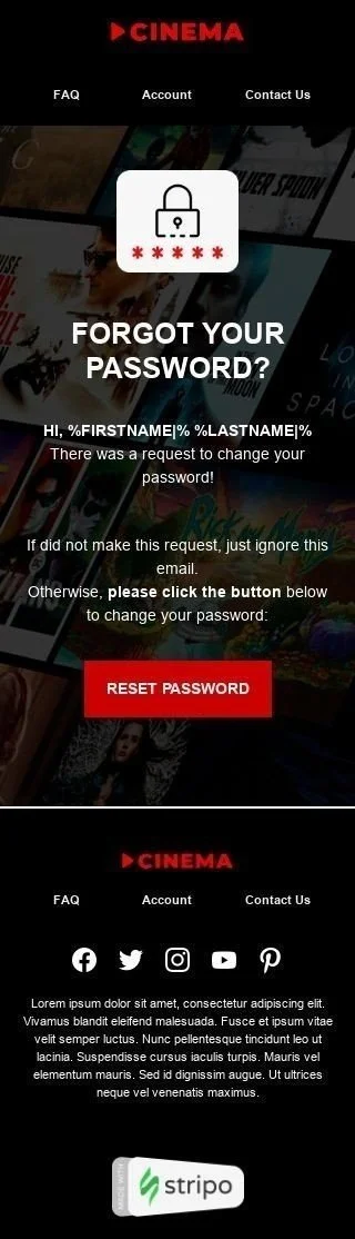 Шаблон письма «Восстановить Кино» тематики Восстановление пароля для индустрии «Фильмы»