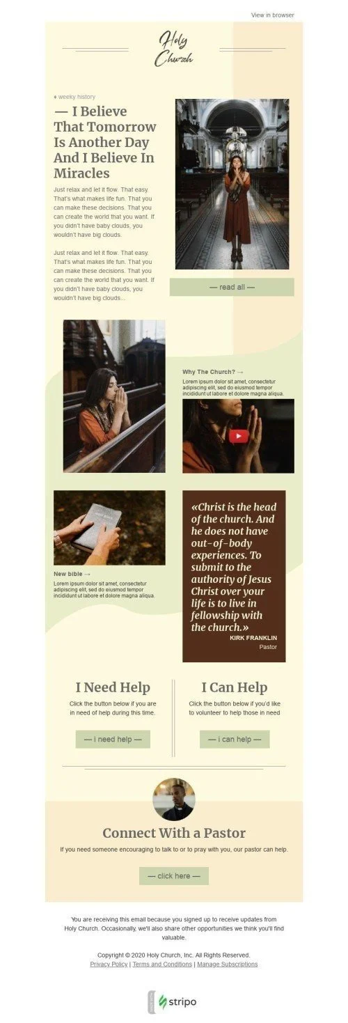 Промо шаблон письма «Святая Церковь» для индустрии «Церковь»