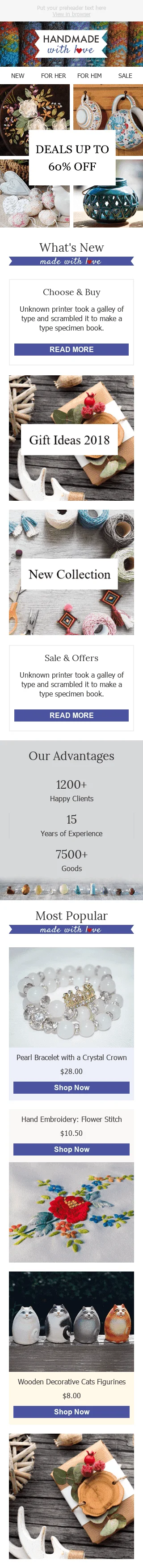 Промо шаблон письма "Сделано с любовью" для индустрии "Книги, Подарки, Канцтовары"