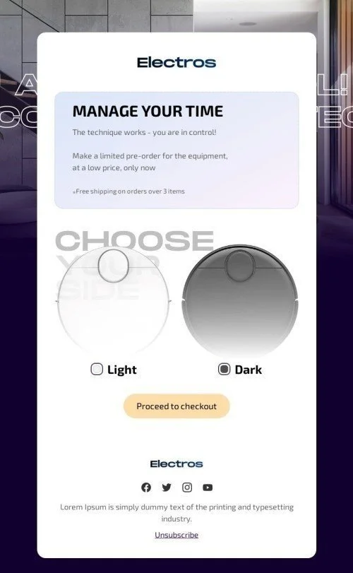 Промо шаблон письма «Управляйте временем» для индустрии «Электронная торговля»