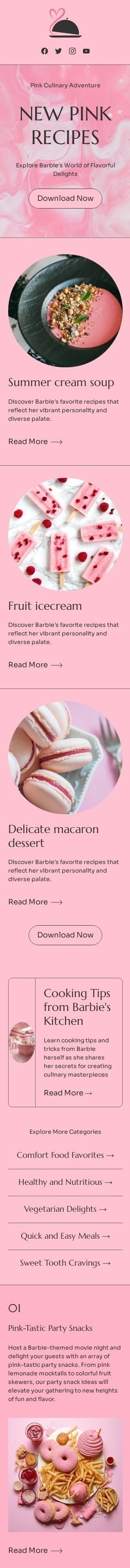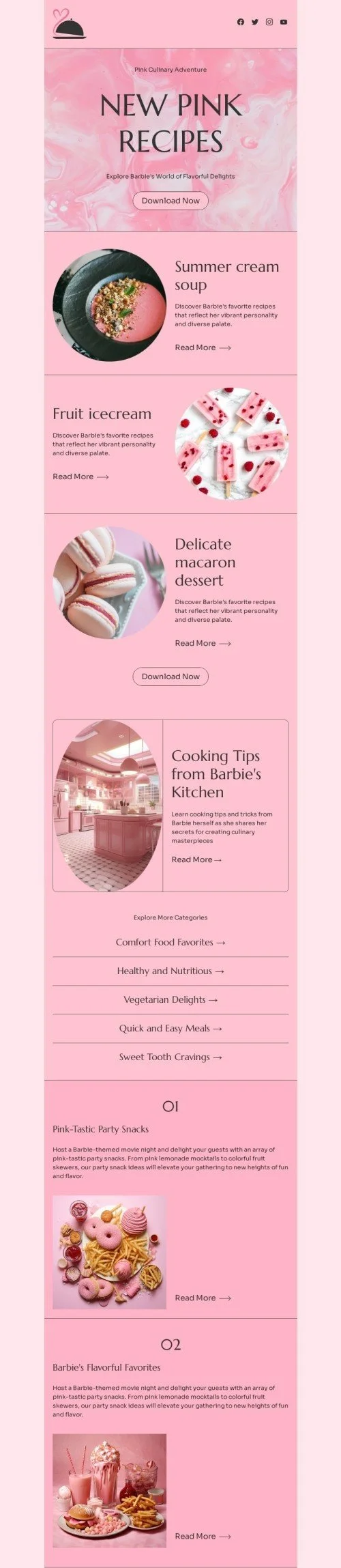 Промо шаблон письма «Розовые рецепты» для индустрии «Публикации и блог»