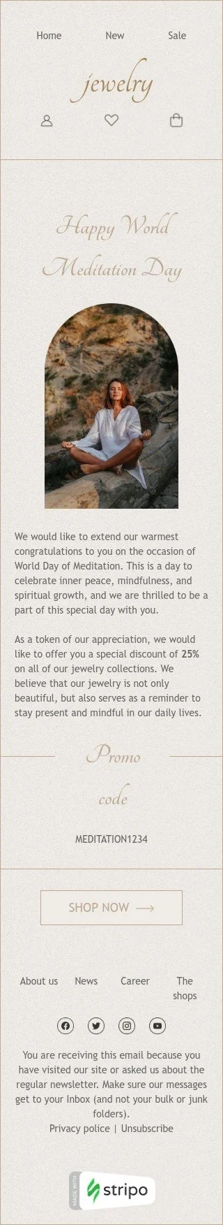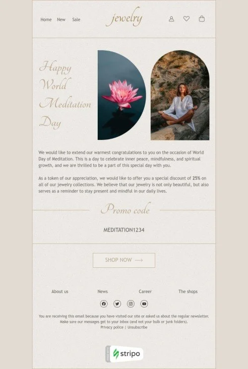 Шаблон письма к празднику Всемирный день медитации «Найдите минутку для себя» для индустрии «Ювелирные изделия и украшения»