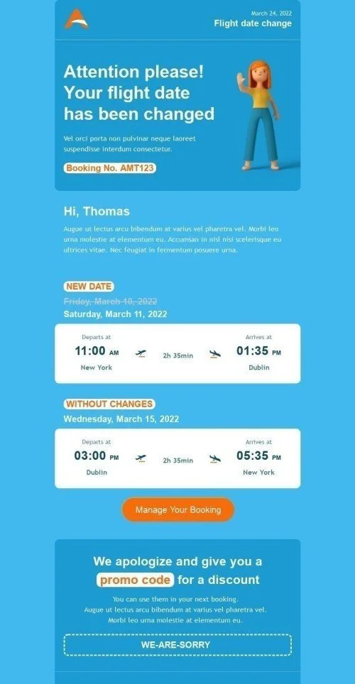 Alerts & Notifications Email Template "Flight date change" for Airline industry