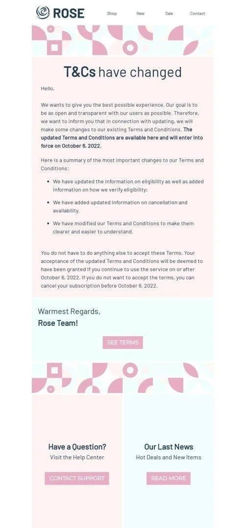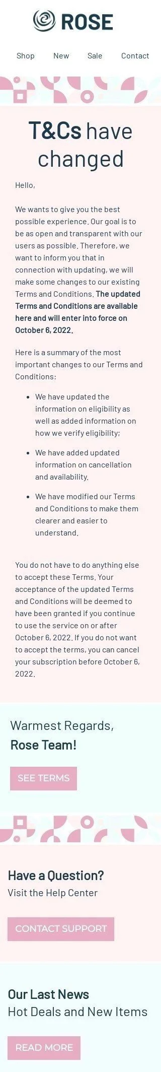 Announcement Email Template "T&Cs have changed" for Fashion industry