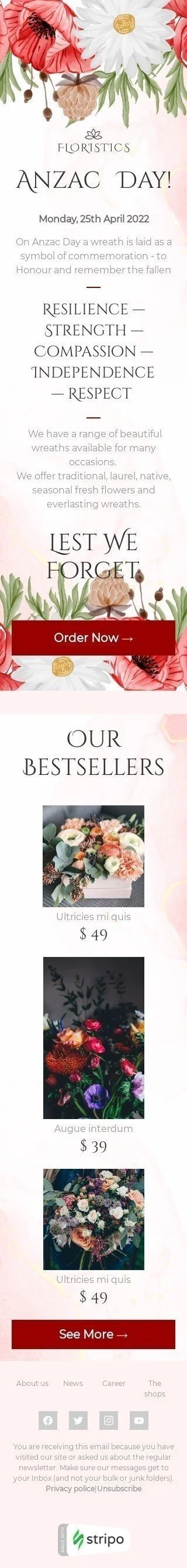 Anzac Day Email Template "Honour and remember the fallen" for Gifts & Flowers industry